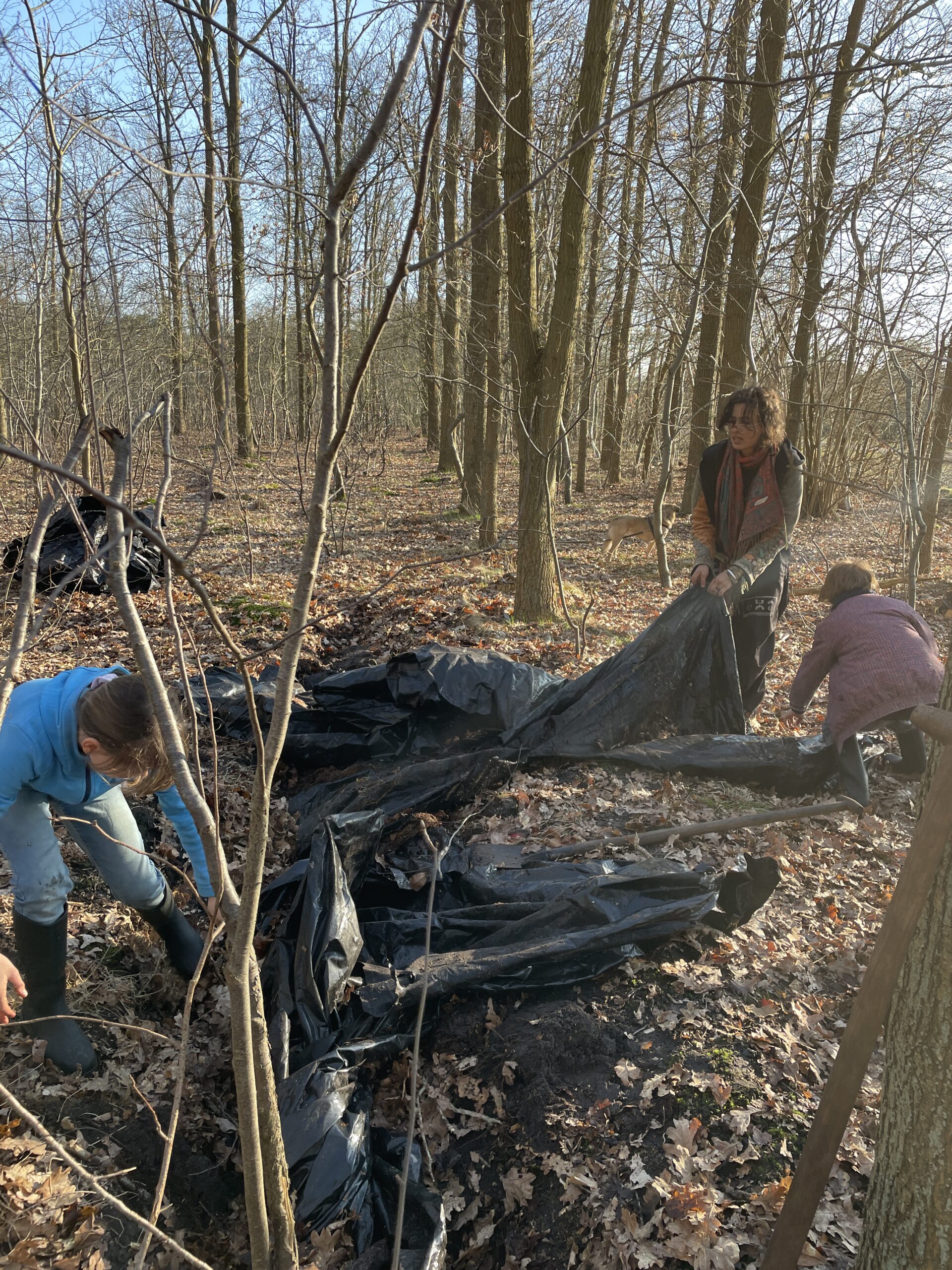 Afgelopen week hadden we hulp om een grote klus in het bos te doen. Daar lag namelijk al jaren een enorm stuk landbouwplastic half ingegraven onder de grond, langzaam te verteren. Samen, met fanatieke assistentie van twee dappere kinderen, hebben we het plastic helemaal kunnen verwijderen en ligt het bos er weer schoon bij.